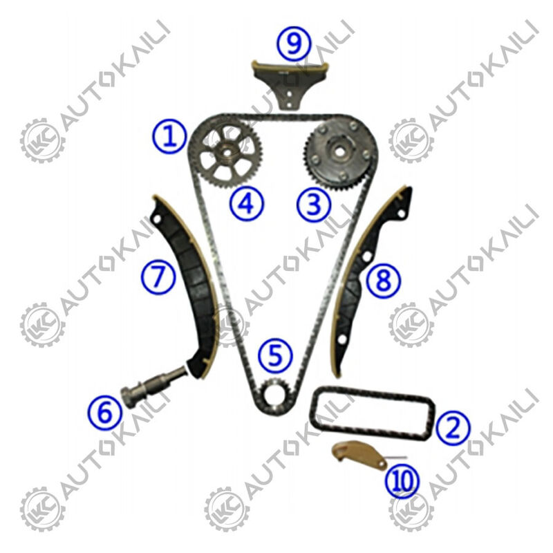 Kit perbaikan kami meliputi rantai waktu, faser poros cam (VVT), roda gigi poros cam, roda gigi poros engkol, rel panduan waktu, tensioner, dan bagian waktu lainnya.